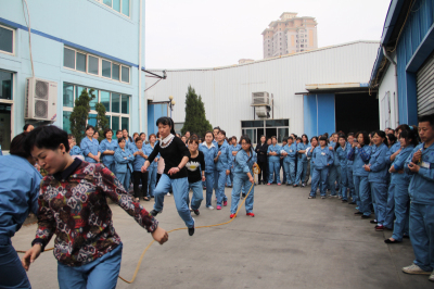 接下来是集体跳绳比赛,10人一组,既需要体力又考验队员的团队配合能力,只见跳绳上下飞舞,队员身轻如燕,真是“绳飞舞,心飞扬”,“1,2,3……”,时间一分一秒地过去,队员和观众越来越紧张,“还有时间,快跳”,“125,好的,超过前面的了”,“149,150,赢了!”大家热烈欢呼,祝贺制造一科丁冬莲组获得胜利。